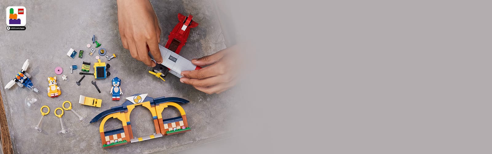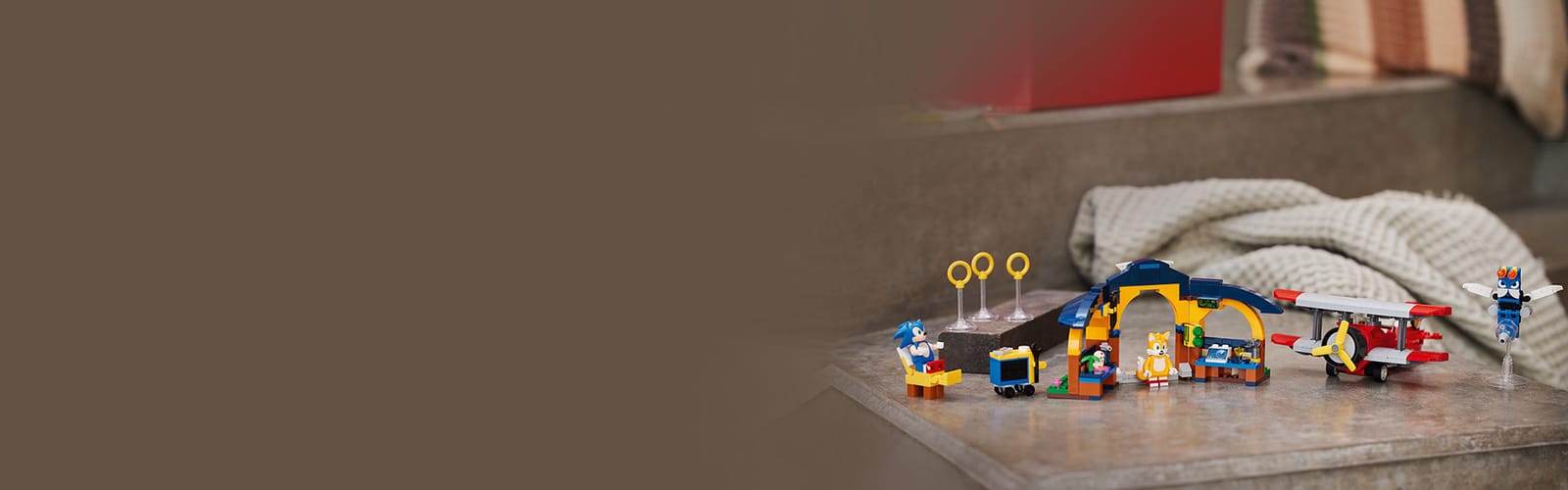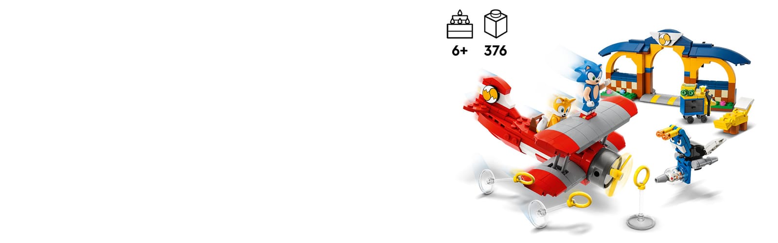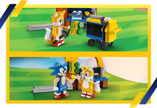 Быстрая игра сочетается с творческим развлечением в этом наборе LEGO® Sonic the Hedgehog™ Tails’ Workshop и Tornado Plane.